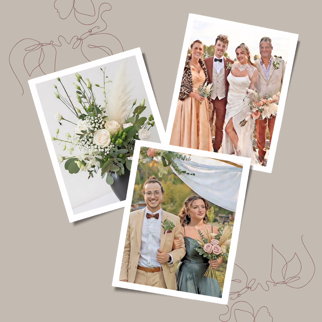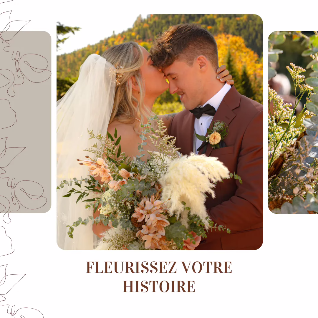 - Réservation : Une fois la soumission acceptée, un dépôt de 50 % permet de réserver officiellement votre date et de sécuriser la commande de vos fleurs.